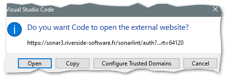 https://sonar3.riverside-software.frin the Server URL field, then click on the "Generate token" button. Click "Open" on the window :