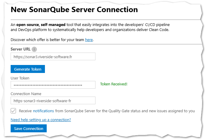 - Click on the "Add SonarQube Connection" button.
