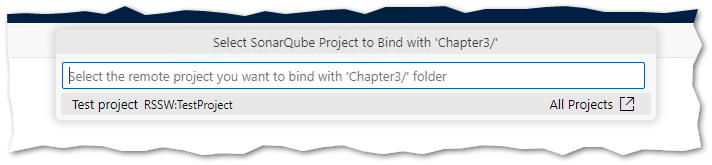 The SonarQube instance used for this workshop contains only a single project. Select this project, and a message will confirm that the current project is now bound to it.