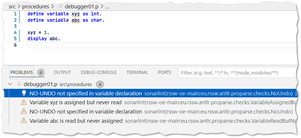Opening any ABL source file will now trigger CABL rules to execute on-the-fly. For example: